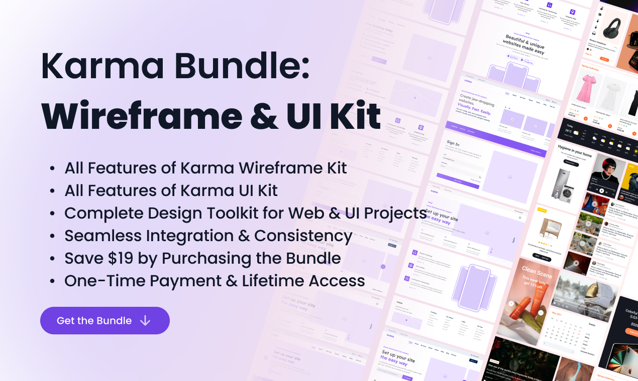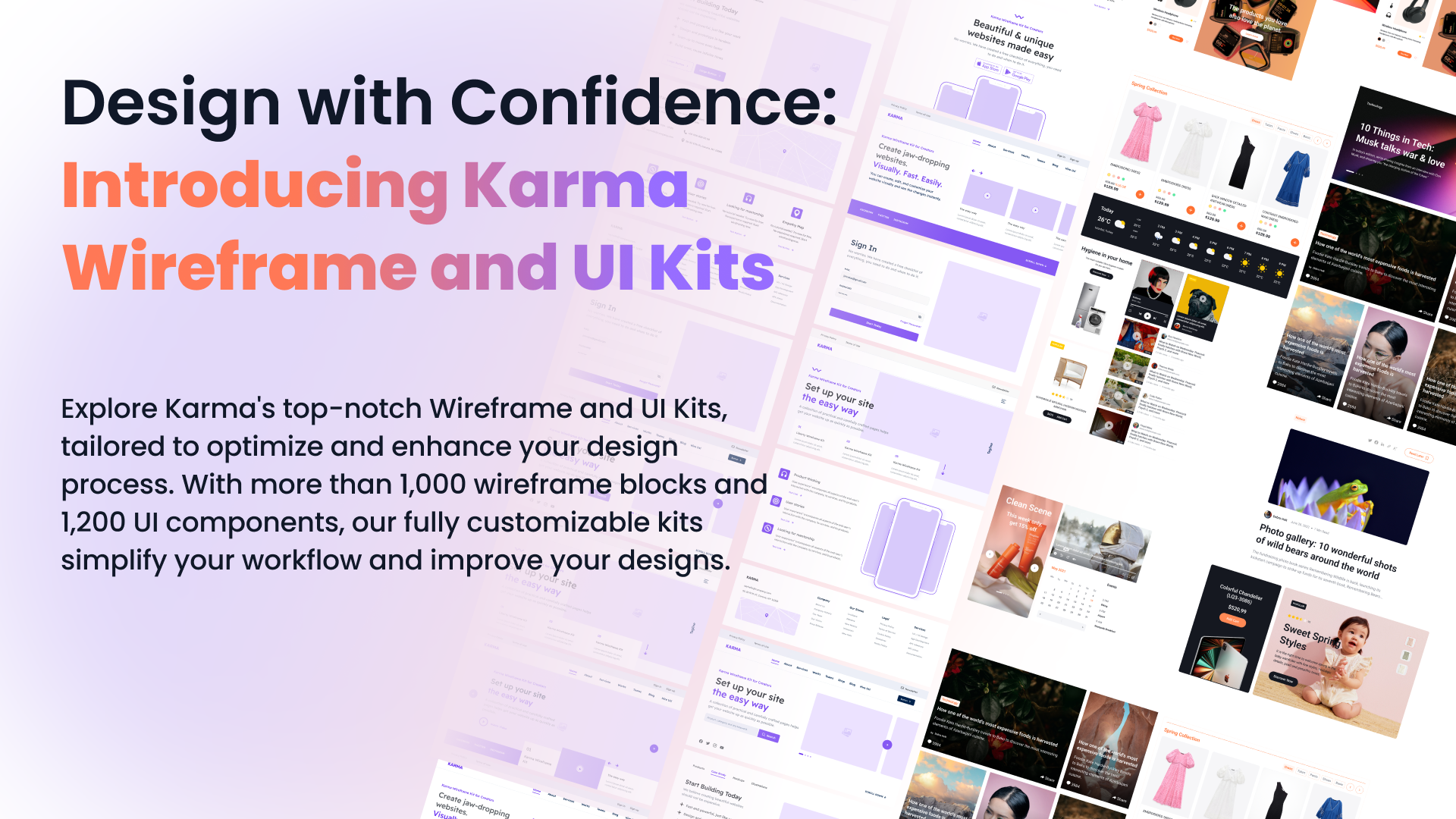 Design with Confidence: Introducing Karma Wireframe and UI Kits. Over 1,000 wireframe blocks and 1,200 UI components, our fully customizable kits simplify your workflow and improve your designs